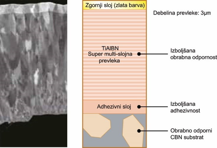 Poleg CBN kvalitet za obdelavo kaljenega jekla ima Sumitomo tudi kvaliteto BN7115 za končno obdelavo delov iz sintranih zlitin. Pri BN7115 uporabljamo substrat z visokim deležem CBN delcev in novo vezivo z izboljšano trdnostjo, ki je sestavljeno iz Co-Al-Cr-WCi. Ta kombinacija dobro prenaša krušenje rezalnega robu zaradi toplotnih šokov in posledično odnašanje CBN delcev iz površine ploščice. S tem so dosegli odlično odpornost proti obrabi in zlomu.